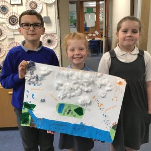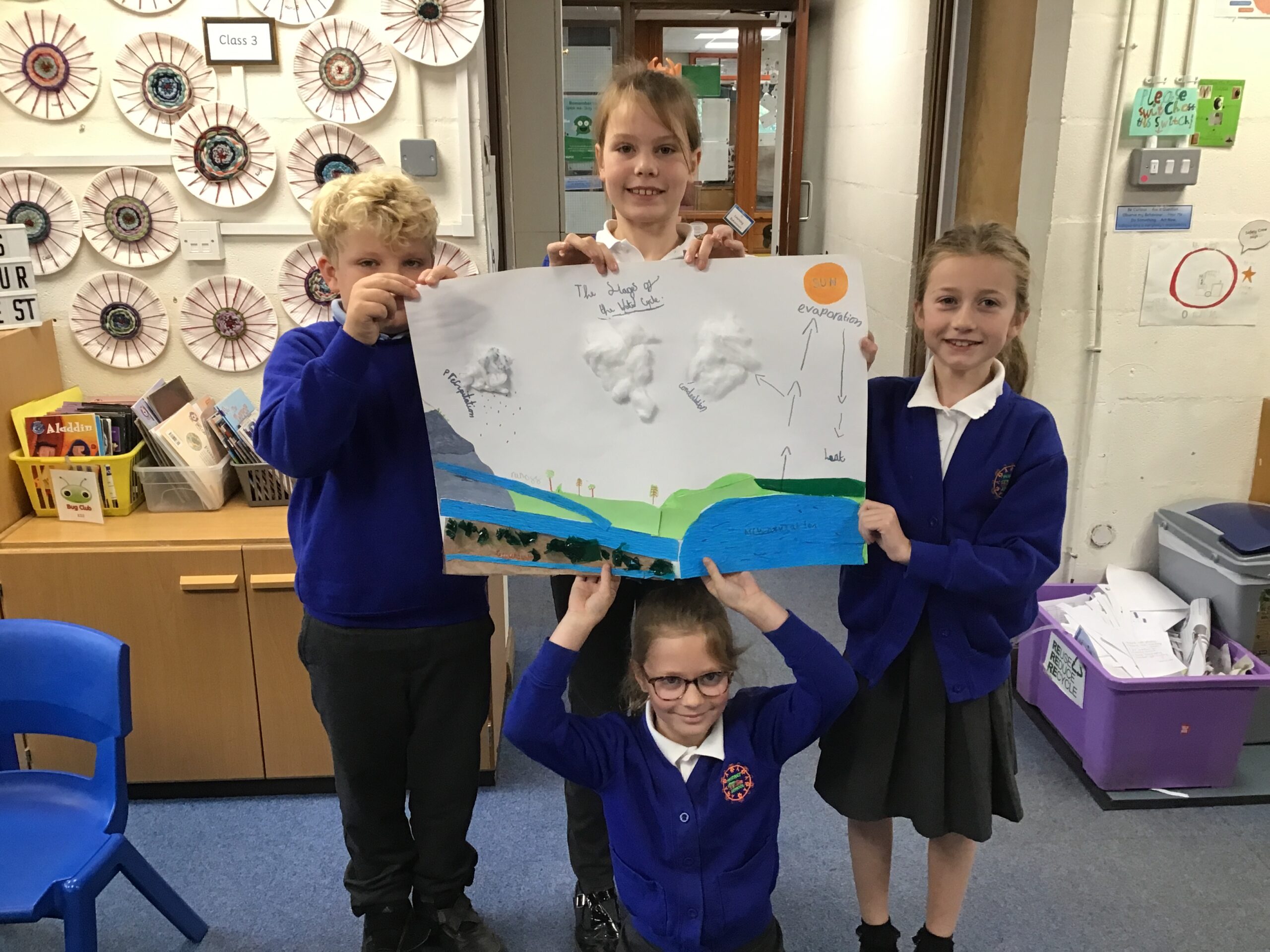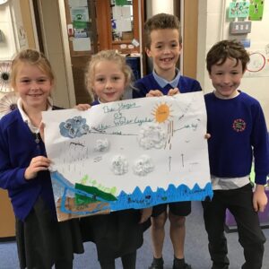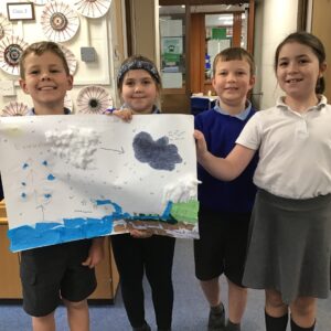 We are learning all about rivers in geography and states of matter in science. To support our learning and show our creativity, we worked collaboratively to make our very own water cycles!
