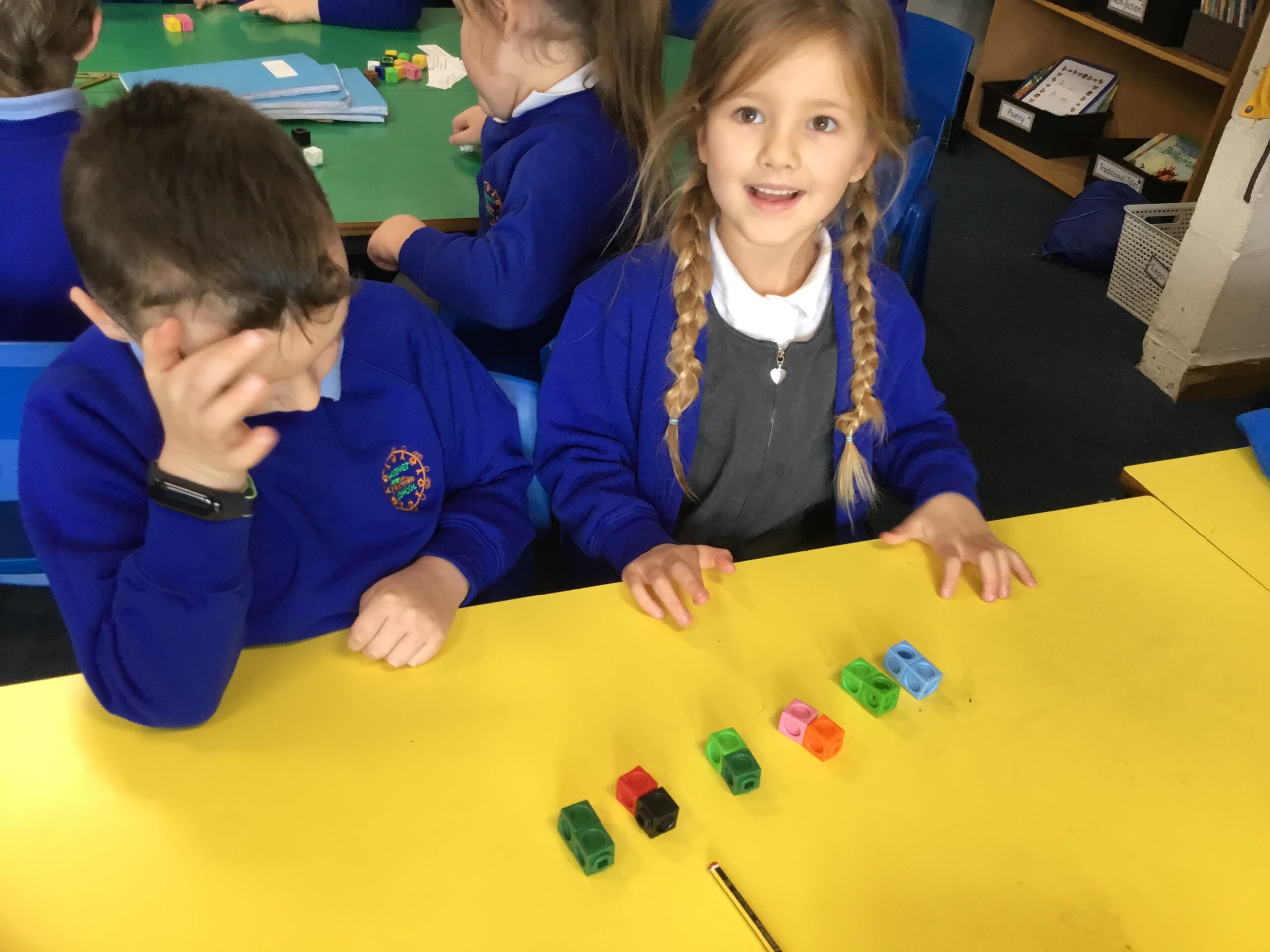 This week we have started learning about grouping and repeated addition in our mathematics lessons. We have been working with cubes to help us develop an understanding of this.