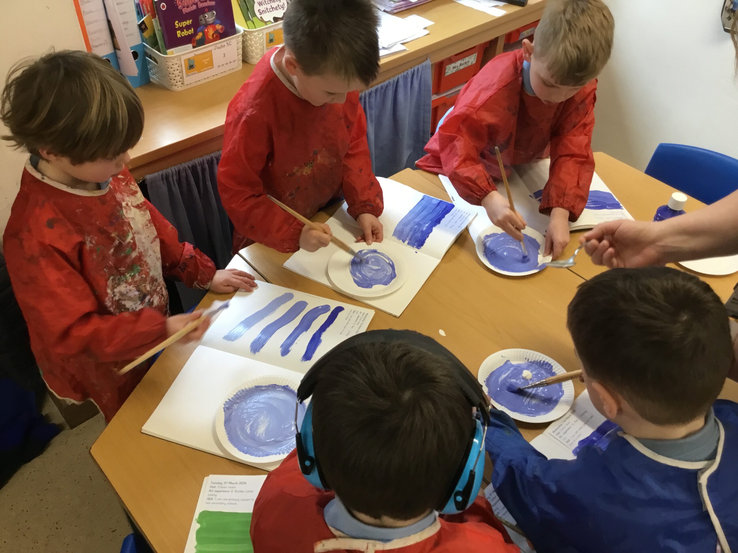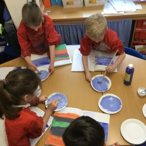 In Art, Class 1 have been learning about colour. We learnt that adding white to a colour makes the colour lighter and makes a tint.