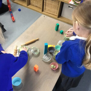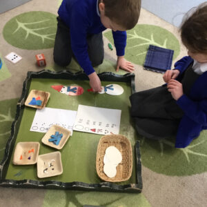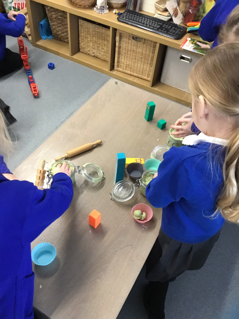 This week in our maths mastery sessions we have been focusing on subitising. We have been looking at linear groups and subitising within them, for example in a line of 4 dots we might explain that we can see 2 and 2. We have been focusing on what we can see, rather than counting. We were able to choose from lots of activities to help us develop that skill, making playdough cakes for the number blocks, playing dice games (making a snowman) matching the correct number of snowballs to a numicon shape, playing the subitising guessing game.